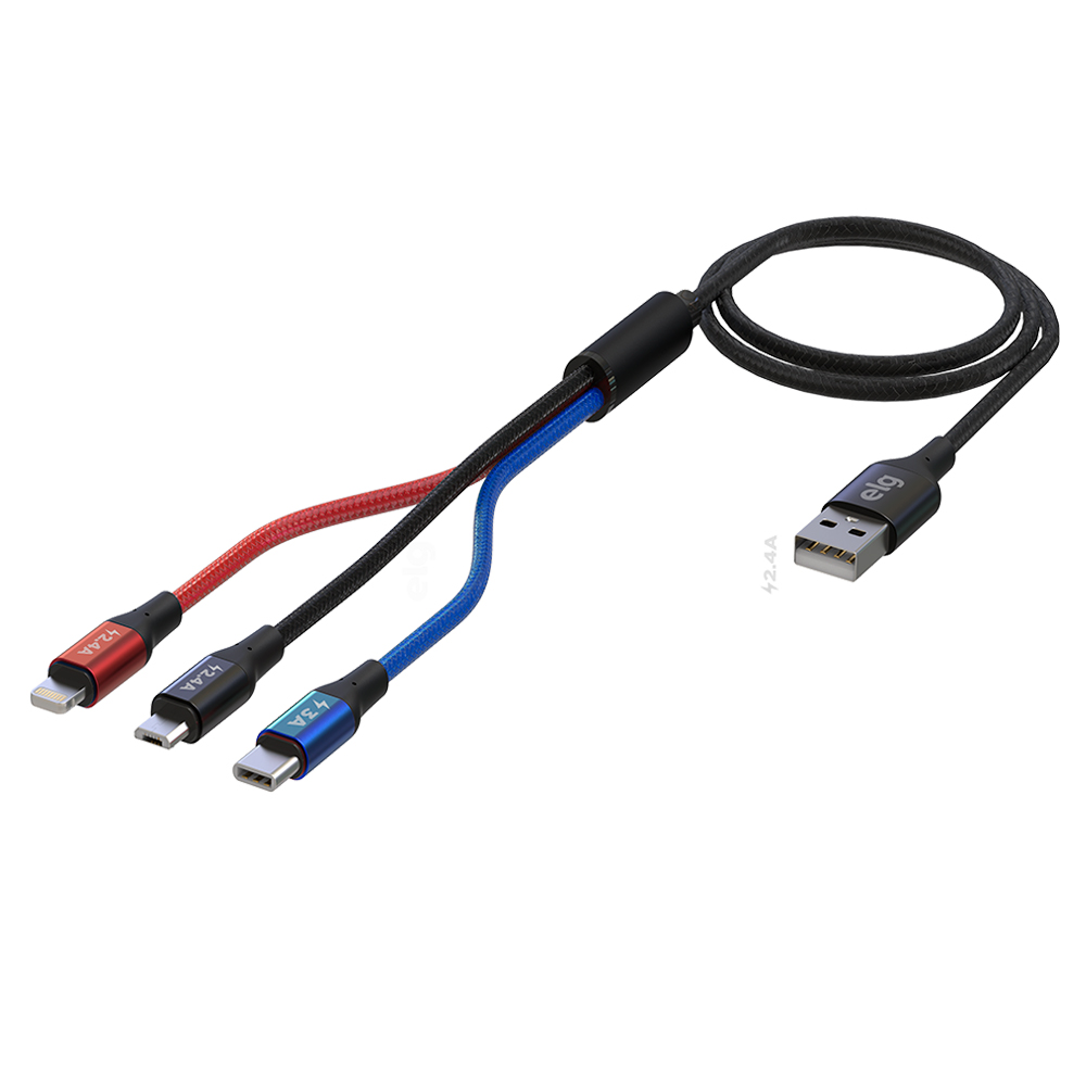 O Cabo 3 em 1 ELG 31CBK é a solução ideal para quem busca praticidade, resistência e compatibilidade em um único produto. Com ele, é possível recarregar simultaneamente dispositivos com portas Apple Lightning, Micro USB ou USB Tipo-C, atendendo smartphones, tablets, notebooks e até iPads e iPods.