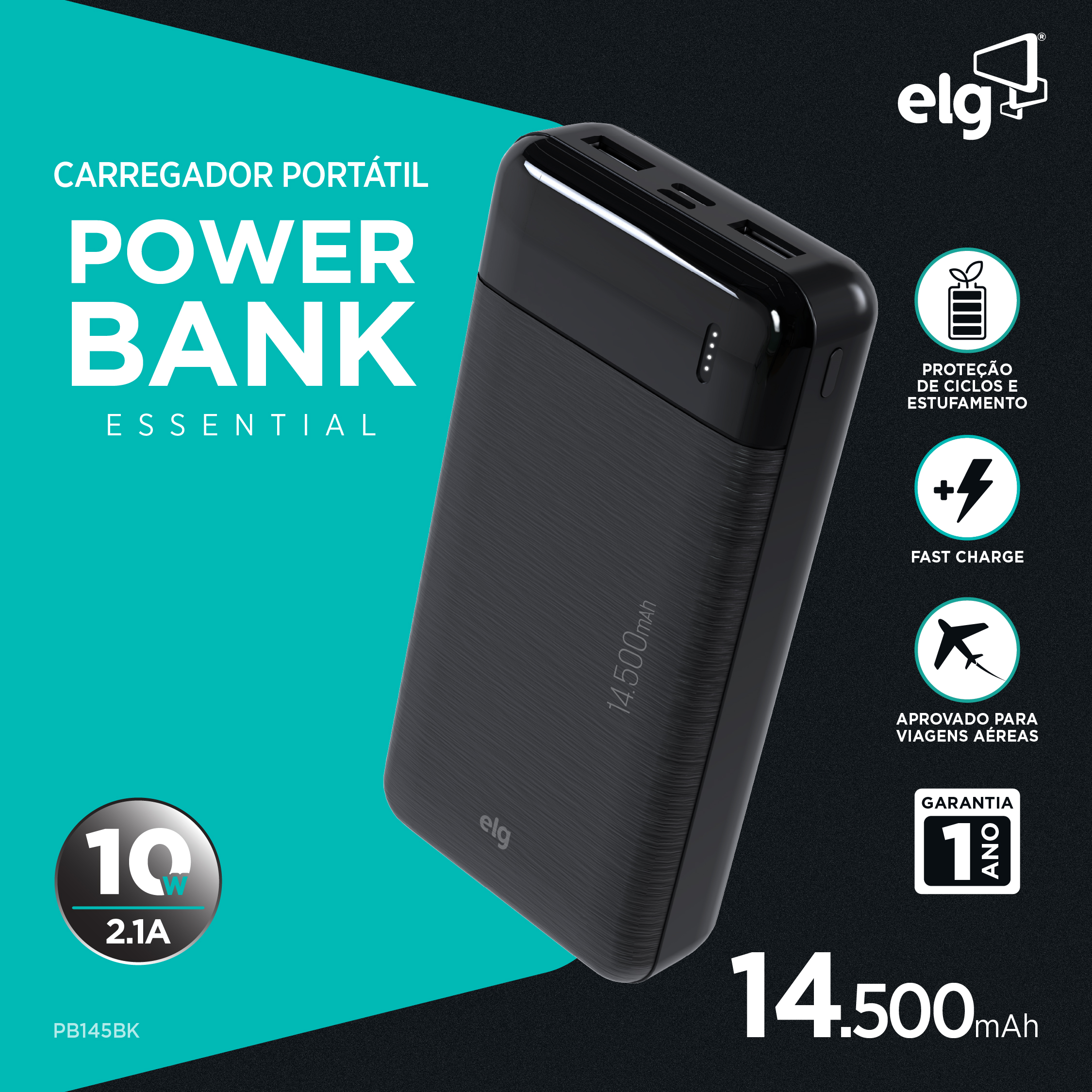 Mantenha seus dispositivos sempre carregados nos momentos mais importantes do dia. O Power Bank ELG PB145BK foi desenvolvido para oferecer autonomia, praticidade e segurança em qualquer situação.