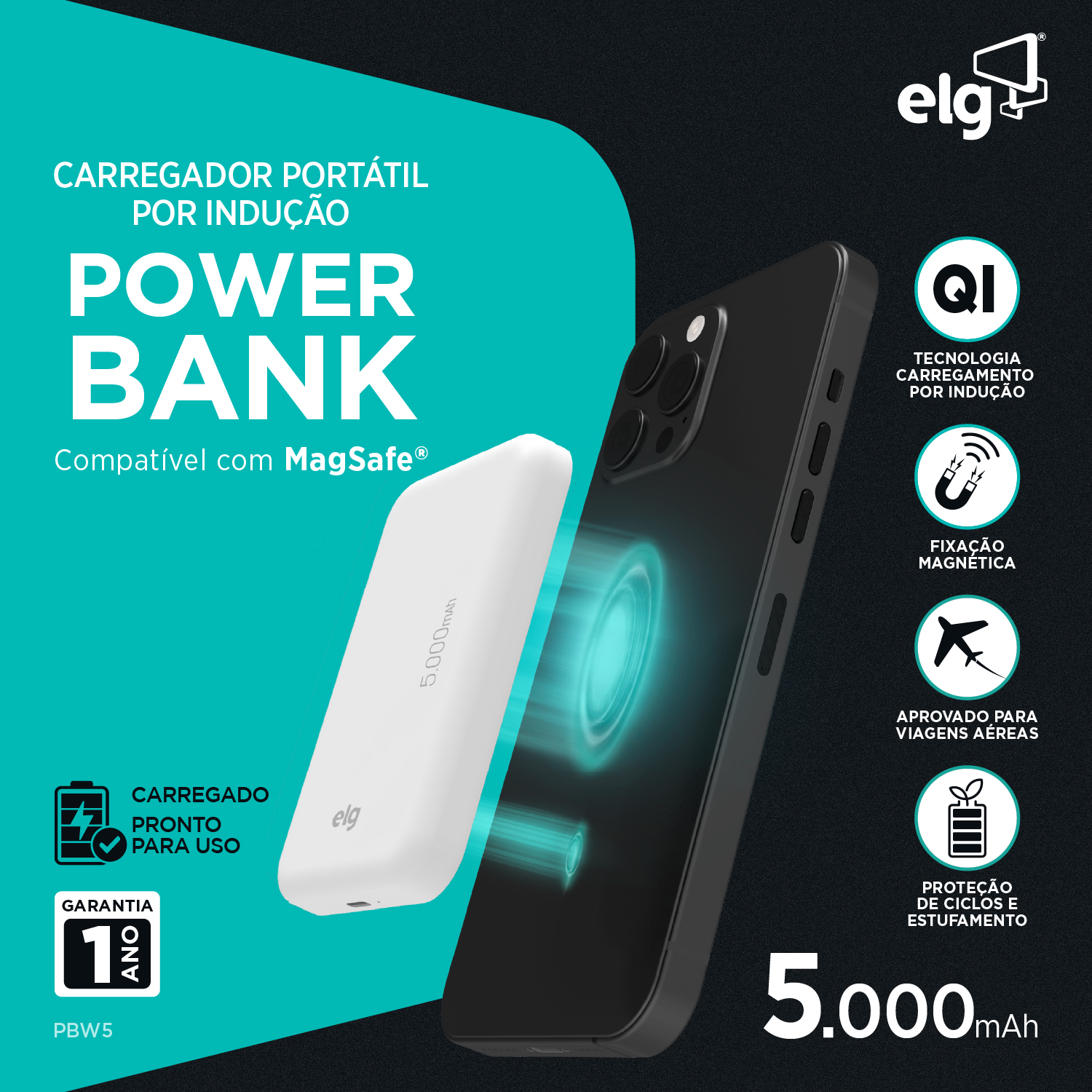 Nunca mais fique sem bateria nos momentos mais importantes. O Power Bank Wireless ELG PBW5 foi desenvolvido para oferecer praticidade, mobilidade e segurança no carregamento do seu smartphone, onde quer que você esteja.